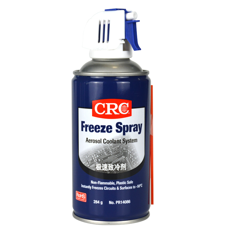 急速冷凍劑美國CRC14086是一種高級環(huán)保冷媒制造而成,不起化學(xué)作用的冷卻劑。能將零件急速冷凍至-45℃,不易燃燒,塑料安全,冷凍噴霧強大的爆炸推進劑能消耗熱量提供一個冷卻回路。