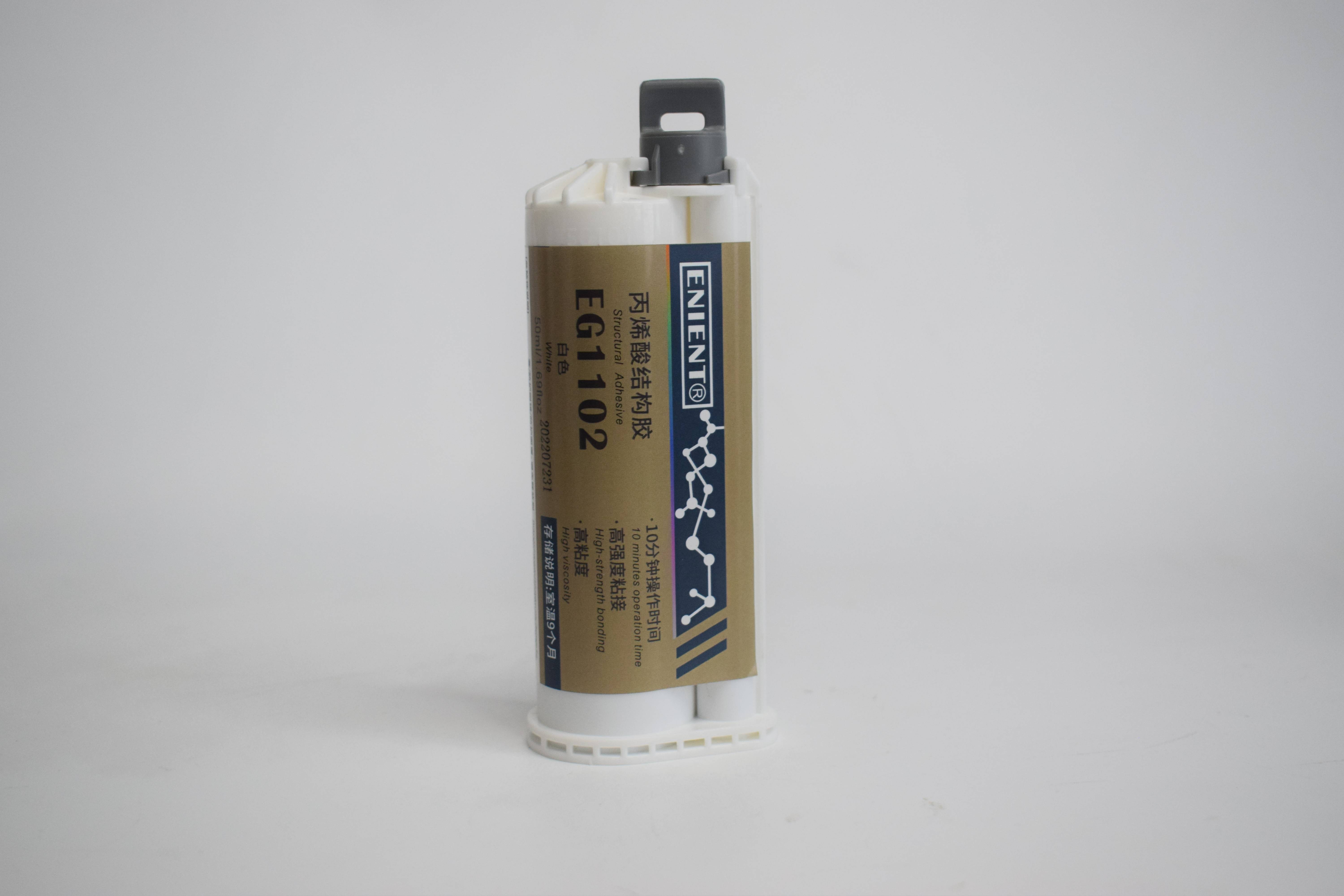 ENIENT開發(fā)了一系列丙烯酸結(jié)構(gòu)膠EG1102系列,具有黑色,白色,透明色,綠色等多種顏色,對于ABS與各種材質(zhì)之間的粘接效果甚佳,可達(dá)破材級別。