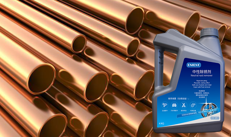 為了有效解決黃銅管道的銹蝕問題,ENIENT®推出了一款專門用于金屬表面處理的中性除銹劑——ENIENT®EC0135。這款產(chǎn)品與傳統(tǒng)除銹劑最大的區(qū)別在于它的中性配方,無酸無堿,既能快速去除表面的銹跡,又不會對金屬本身造成腐蝕或損傷。