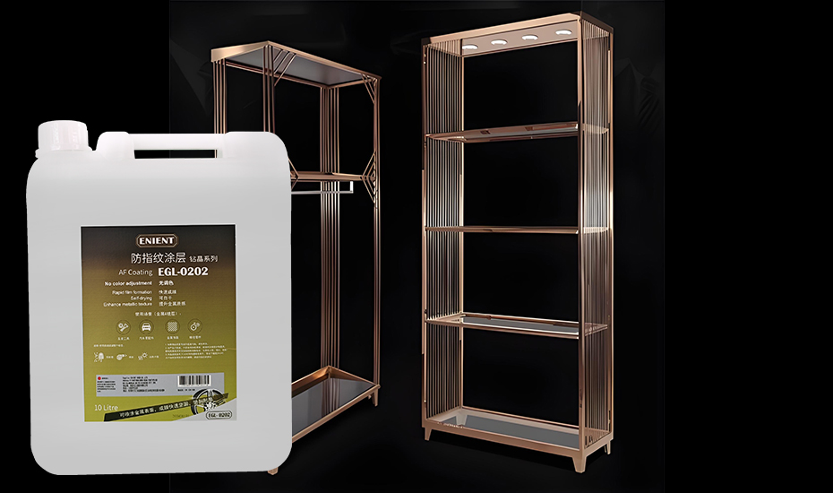 4.油性納米防指紋油:將油性技術(shù)和納米技術(shù)結(jié)合,從而得到一種操作方便又極透明細(xì)膩的涂層,并且擁有油性產(chǎn)品的絕佳附著力,同時(shí)降低了成本。以ENIENT EGL0202單液免烤型防指紋油為例,噴上自干即可達(dá)到比烘烤更強(qiáng)的性能,并且透明度高,做出來的不銹鋼制品十分高檔。